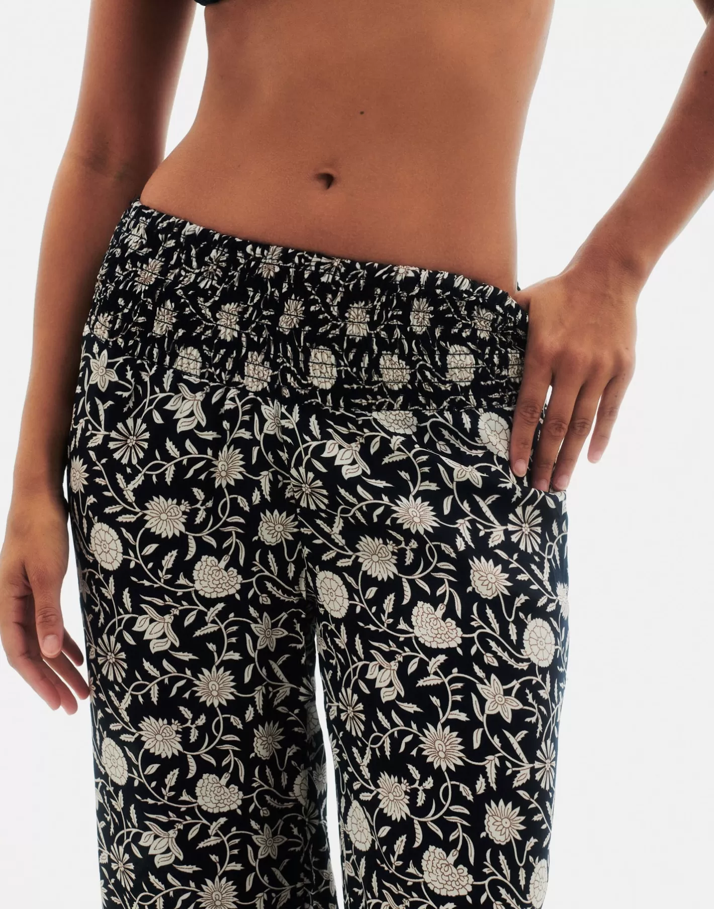 Printed straight-leg, high-waisted pants. Featuring an elastic waistband and side pockets. Silk blend fabric.